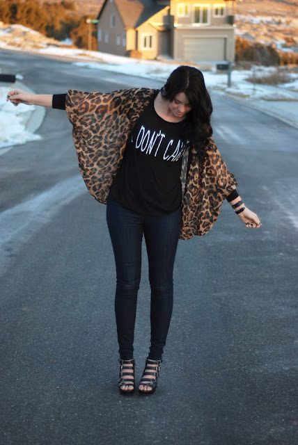 Today I am keeping it simple from my usual complicated outfit. Jeans and a graphic tee with this oh so cute leopard cardigan. Did I mention this cardigan is on sale? You should check it out. I think everyone needs to own leopard print, or in my case A LOT of leopard print. :)
